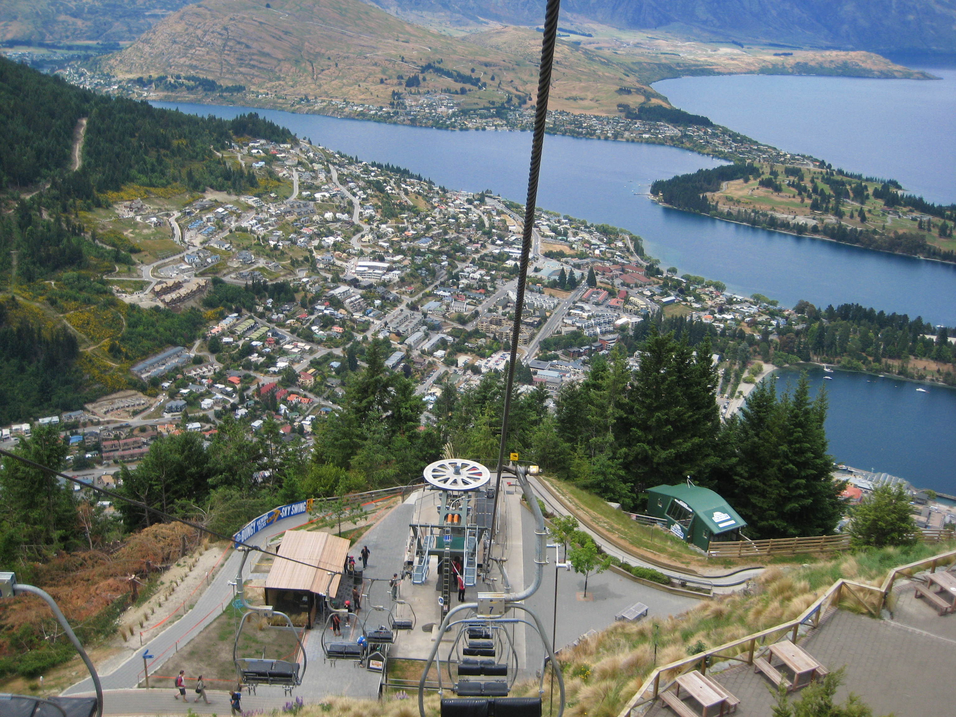 Given the weather of the past week, we were very grateful that the sun was out and shining. Around 1pm we decided to take advantage of it and headed out to the gondola/cable car ride in town. The Queenstown Gondola is very similar to the one in Rotorua that we enjoyed while visiting the North Island. After a ten minute drive into town, we parked and prepared for our steep journey high above Queenstown. Oddly enough, while walking to the entrance, we passed a pair of miniature golf courses and a cemetery!
