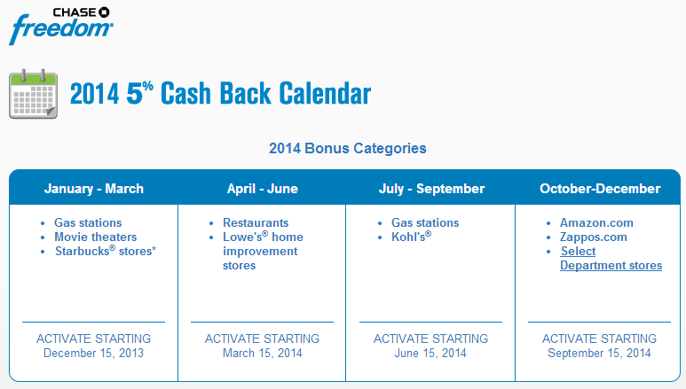 Chase has just announced what those bonus categories will be for 2014. Here is how it looks.