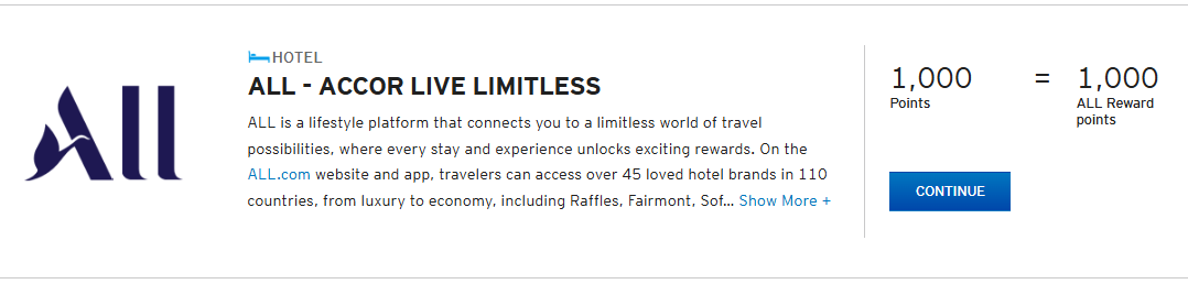 Citi added Accor Live Limitless (ALL) as a partner in the ThankYou Points program in 2023. Normally you can transfer 2 ThankYou Points for 1 ALL Reward point. But we sometimes see a transfer bonus that will give you 50% more points.