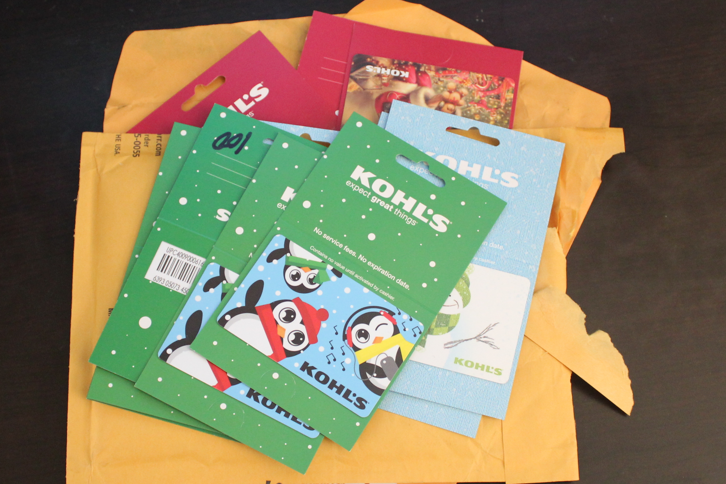 This past Thursday I opened the mailbox and saw an envelope from Kohl’s. Â Sometimes I order things and forget about them, so it didn’t immediately dawn on me what this was. Â When I opened it, much to my surprise, there were five cute penguin gift cards each with $100 written on them. Â Immediately I fired up my computer and checked my Kohl’s Card account. Â It said I had a $0 balance. Â I thought immediately that Kohl’s may have somehow cancelled my order, but still shipped the cards. Â After all, someone had taken the time to write the denominations on them.