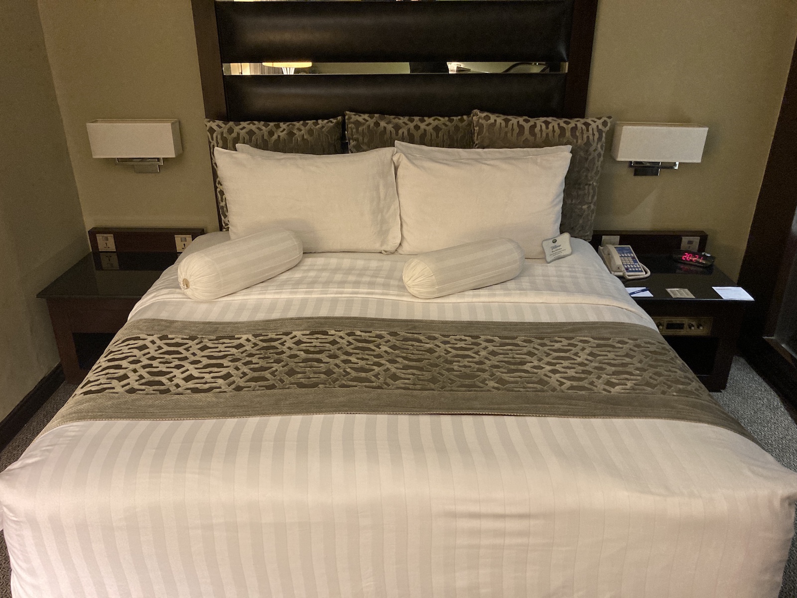 The pillows provided were good enough, though I’m not a fan of the mountain of decorative pillows I had to find a place for. Luckily, housekeeping took these away the next day without my having to ask.