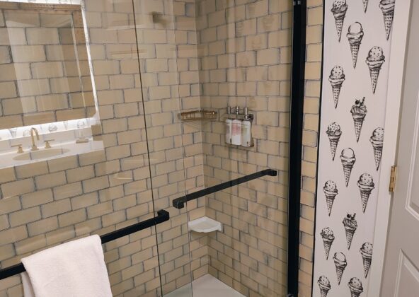A handy bench welcomed us at entry, followed by a closet (with a door!). A variety of functional lighting brought out the room’s decor and color. Beds were plush, and light fixtures offered handy charging options. The desk sat adjacent to the large TV; the chair wasn’t as comfortable as it looked. HVAC unit was an old-school one controlled under the room’s window, something I didn’t expect from this level of property. Or maybe I just need more Graduate stick time. One thing is for sure – Graduate leans into the bit. Penn State colors and flare were all over the room: “we are” pillows, ice cream wallpaper in the bathroom shouting out Berkey Creamery, a Nittany Lion lamp, etc. Plus, alum Ty Burrell was taunting me in the hallway (see the end).