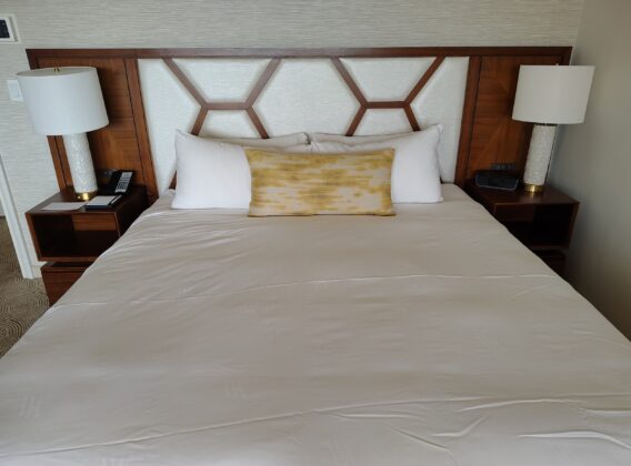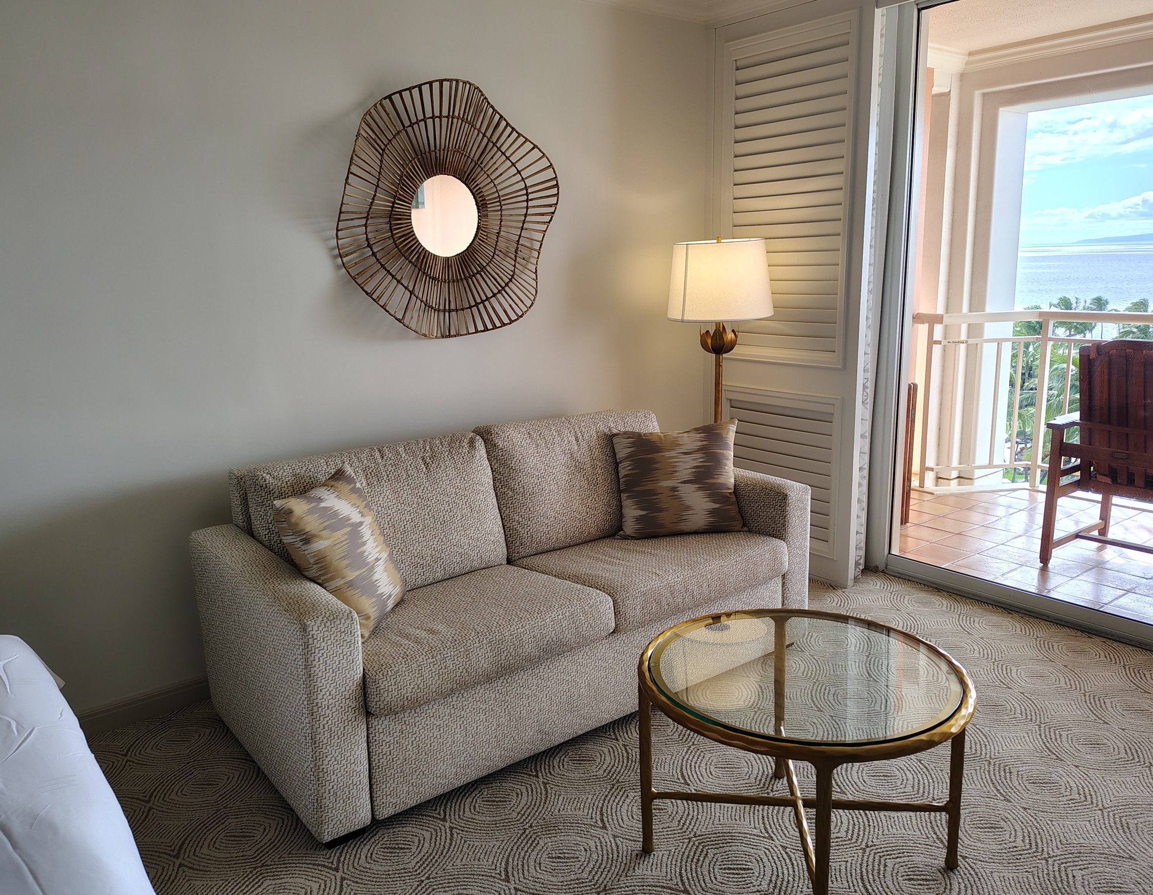 The pair of front desk agents weren’t bothered by the exponentially-growing line at check-in, which turned out to be the longest front desk line we experienced during our entire stay. But like the reps, I acted as if that line didn’t exist once it was my turn. Our front desk agent was warm and informative throughout the process. And she delivered when it mattered most. I inquired about any available upgrades due to my Hilton Honors Diamond status. She offered an upgrade from our two-queen garden view room to a king bed with full ocean view in the Wailea Wing. This room also came with a pull-out sofa for our two little ones.