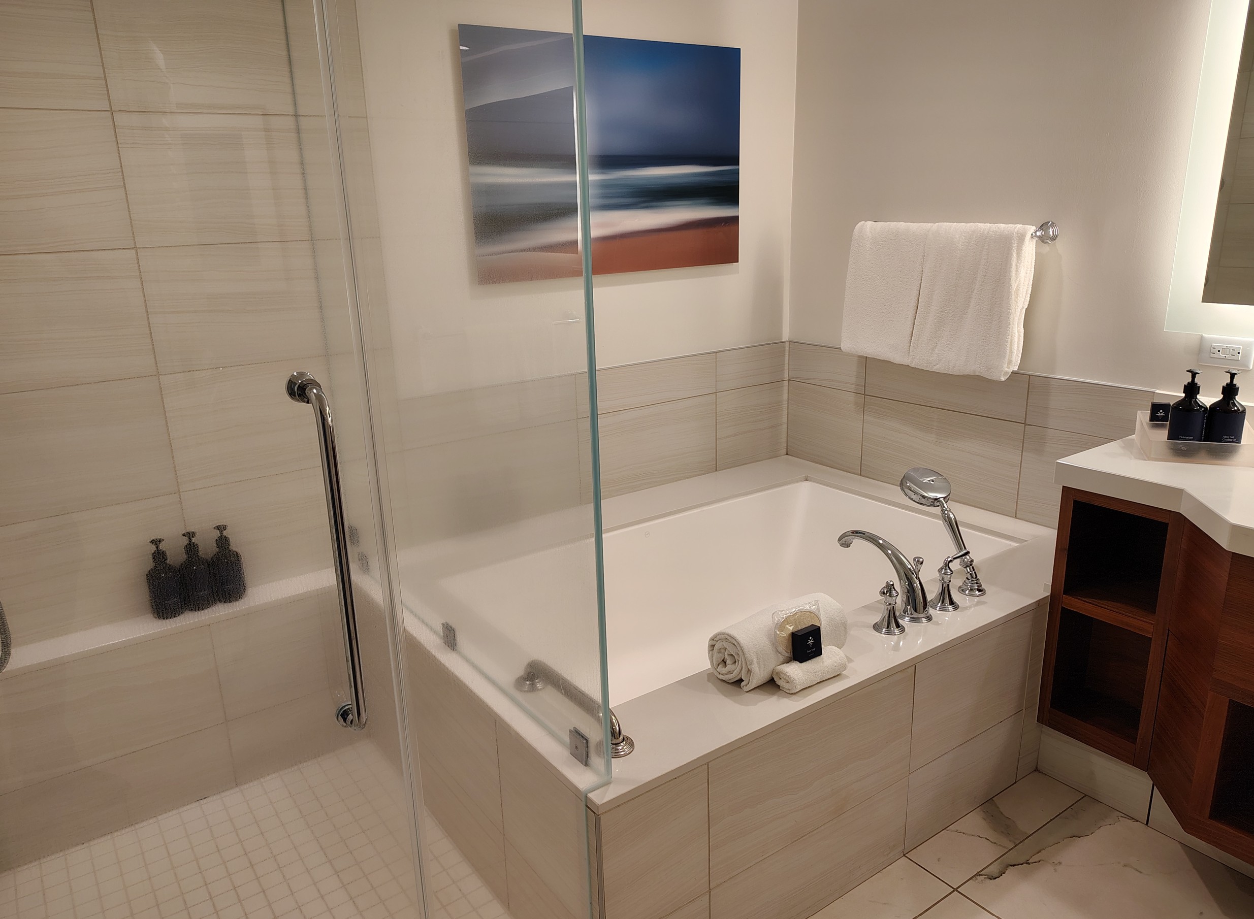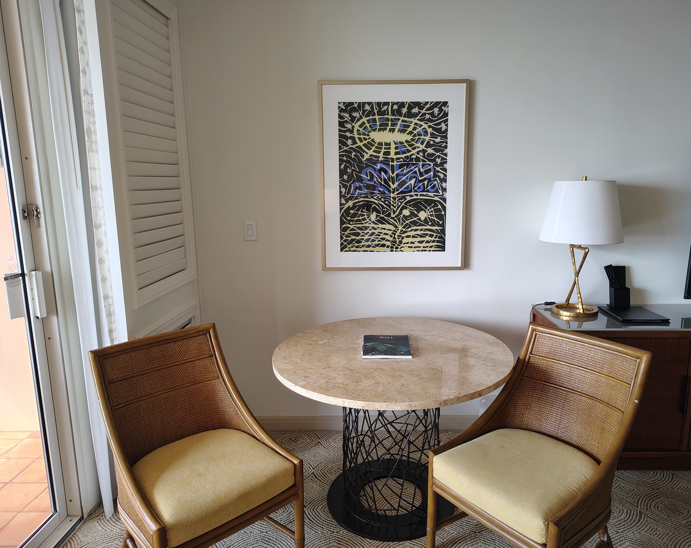 The room itself was…fine. The Grand Wailea underwent a full room renovation just a few years ago. But the condition of our room felt like it wasn’t that recent. Overall, the room – and more importantly, the view – were satisfying enough. But closer inspection quickly revealed imperfections – chipped paint, nicked-up furniture, temperamental bathroom doors, stained cushions, etc. Understandably, the property can’t control some of this – disrespectful visitors abound. But the Grand Wailea Maui room is a clear step below the standard of other Waldorf Astoria properties I’ve visited, even ones I’m not particularly enamored by. Again, I’m not surprised by this, given the sheer size of this sprawling property.