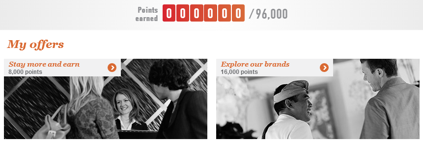 TOTAL POINTS: 96,000 (Her 2013 offer involved 4 nights, required stays in 2 specified cities and awarded 99,000 points.)