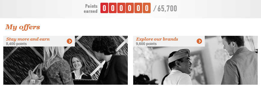 TOTAL POINTS: 65,700 (My 2013 offer involved 4 nights and awarded 79,500 points.)