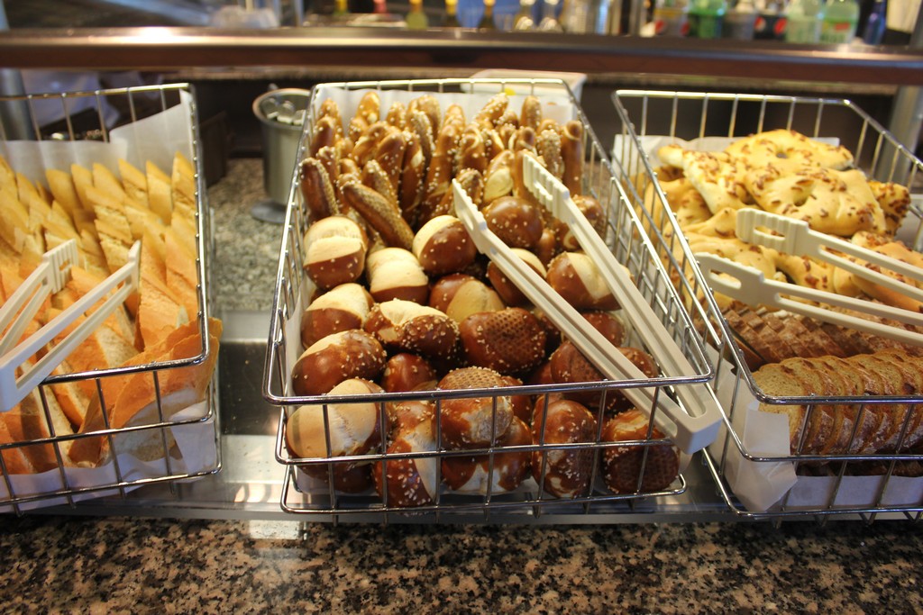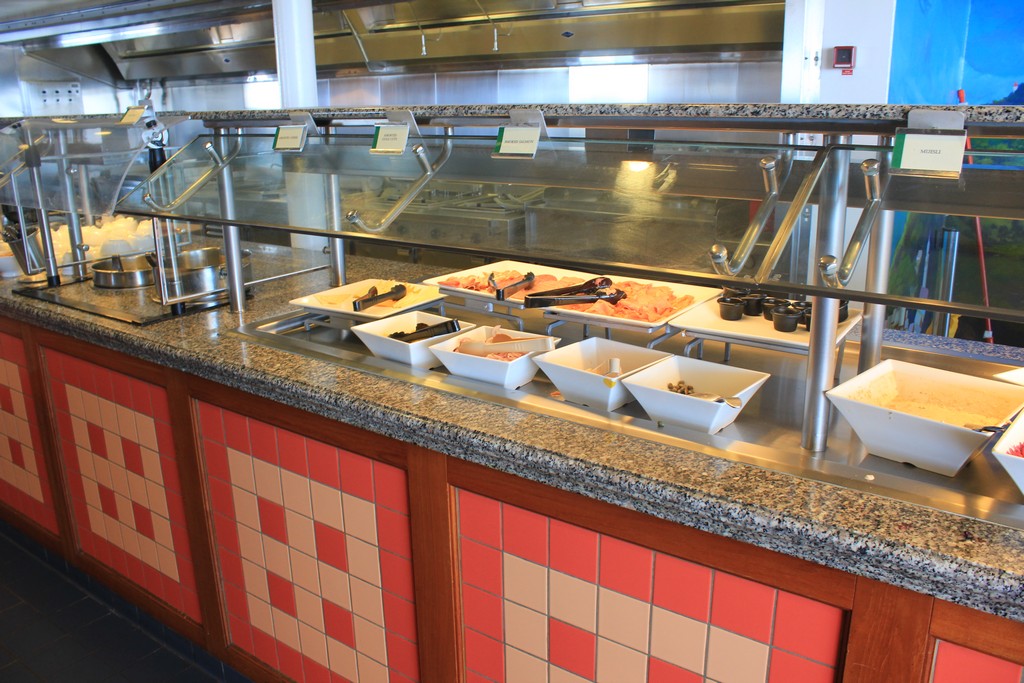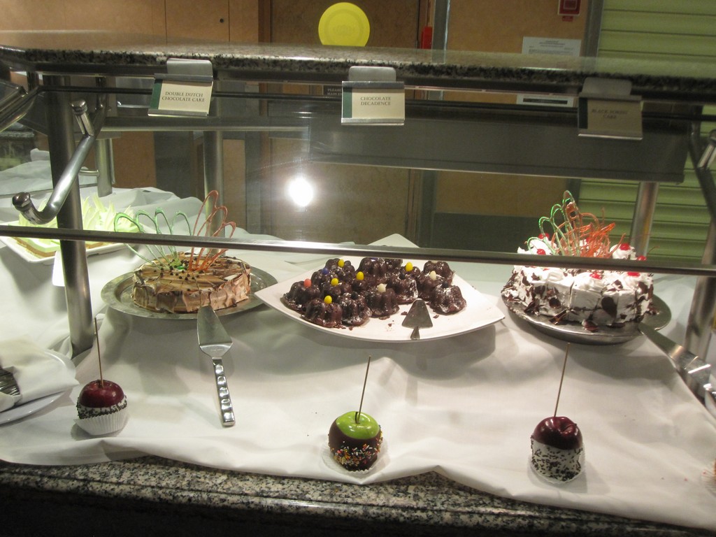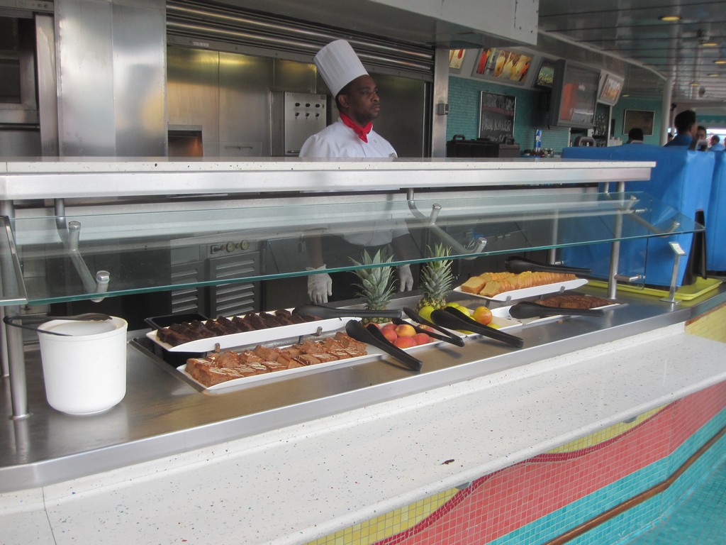 (Both the Garden Cafe & Great Outdoors serve similar food and are located next to each other) The Jewel’s buffets are uninspiring for the most part. While most of the food is boring and in some cases tasteless, the Indian selections at lunch, the salad bar and of course the pretzel rolls are fantastic. As far as breakfast goes, all of the standard fare is available. The morning is by far the busiest time of day as few people on my sailing took advantage of the breakfast served in the dining room. I did notice a couple of times that the staff was slow to restock some popular items on the buffet, but this can happen when a large rush of people comes in.
