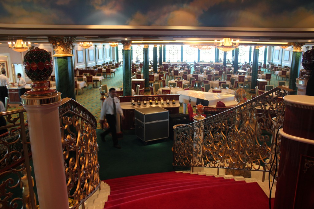 The Jewel has two main dining rooms. The Azura Main Dining Room is located Midship on Deck 6 and is slightly less formal while Tzar’s Palace is located Aft on the same deck and has a slightly more upscale feel. Each has its own set daily menu with items like chicken or fish. One dining room has a New York Strip while the other has a Ribeye for example.