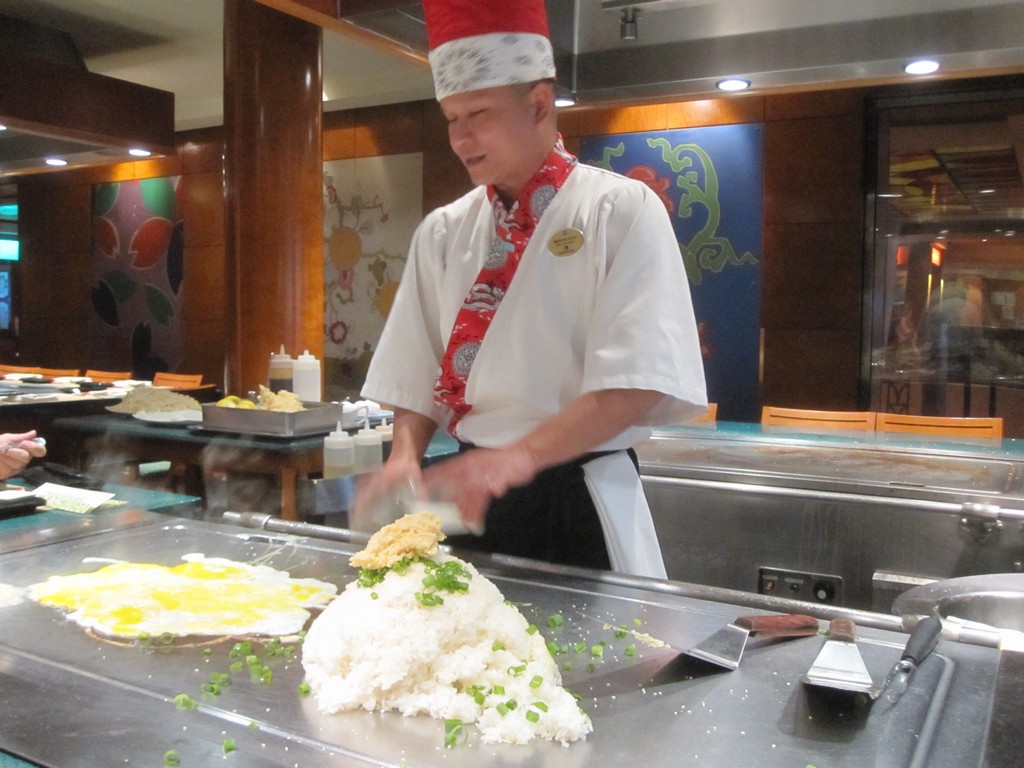 If you have ever been to Benihana or just about any other Teppanyaki restaurant then you are familiar with this style of eatery. You sit around a table that has a flat top grill in the middle. As the chef prepares your food, he makes jokes and entertains you. I actually ate at the Teppanyaki on the Jewel. The chef was really great and the entire group of people I was eating with enjoyed the meal. As for the food quality, I found it pretty standard and in no way fantastic. With a $25 cover charge, I would almost say this is something that can be skipped.
