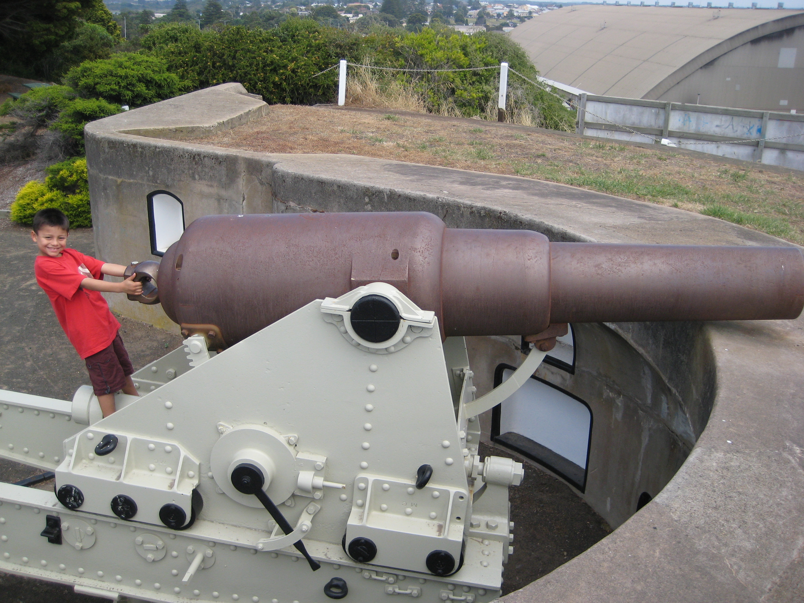 Satisfied with what we had seen, the three of us made our way back to town. Since we had some extra time, we decided to visit a couple of small attractions before heading towards Robe. The first place we visited in town was the local botanical gardens. The gardens were very small and the highlight seemed to be a historic tram running around town that we encountered outside of them. Unfortunately the price was expensive and we passed on the experience. We had higher hopes for our next stop, the local armory. Unfortunately this wasn’t much more than a couple of old cannons. Of course, Shawn Reece always enjoys cannons so this wasn’t exactly a wash. Finally, before leaving town we went to the information center for a map and saw a small fair adjacent to the building.  The fair had a roller coaster, but it was rather tame and for $8AUD I decided to pass. (Or Jasmine forbid me from spending the money!)