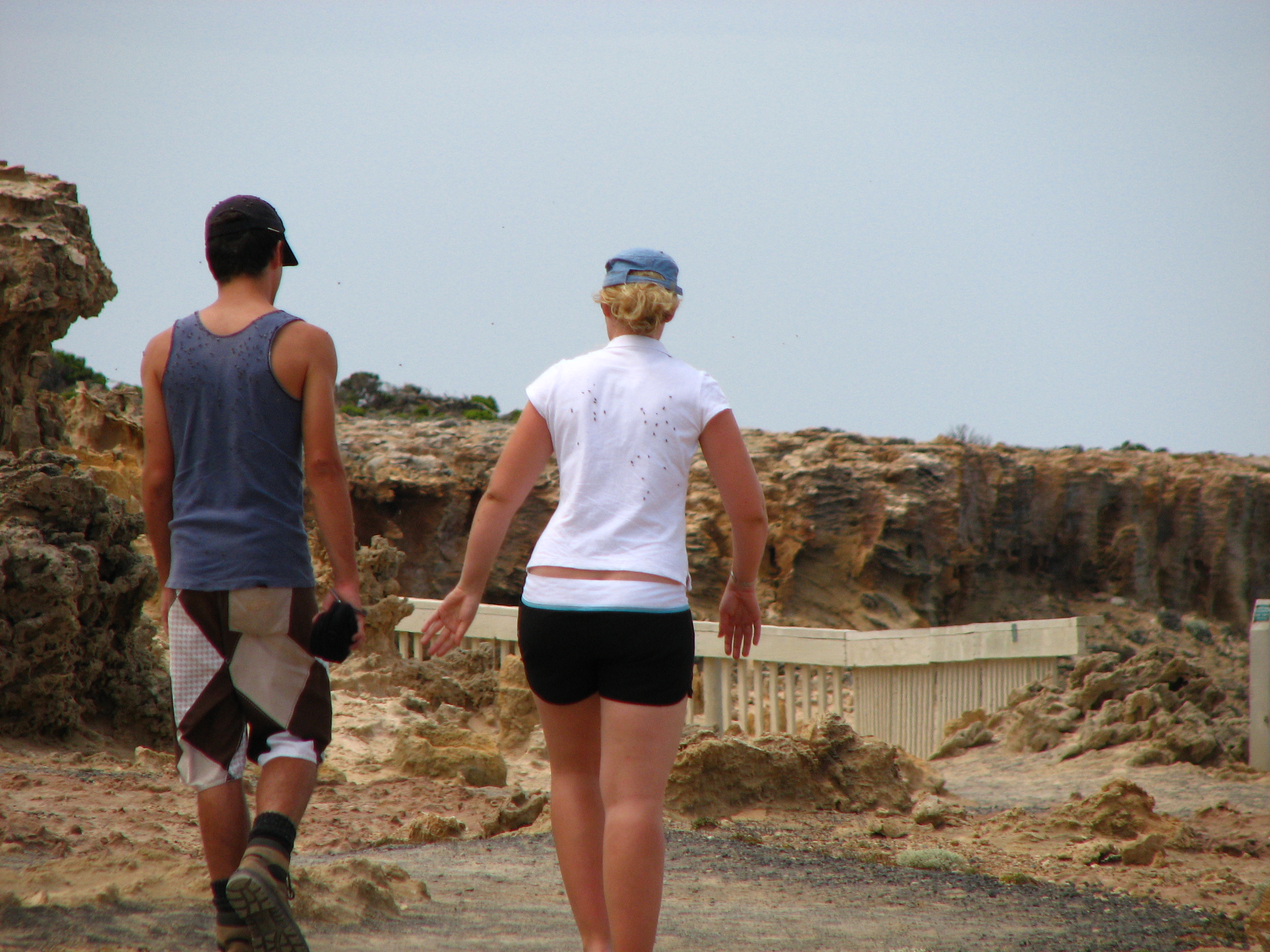 Once we arrived at the carpark on Cape Bridgewater the sun was brutal. This meant that the flies were out in full force. The two things we came to see at the cape were blowholes and the petrified forest. From the carpark we chose to head towards the petrified forest first. While the “forest” isn’t actually what its name would suggest, the rock formations found there were formed in cavities when trees rotted away thousands of years ago. The site of these formations was interesting but the flies really starting to get to us.