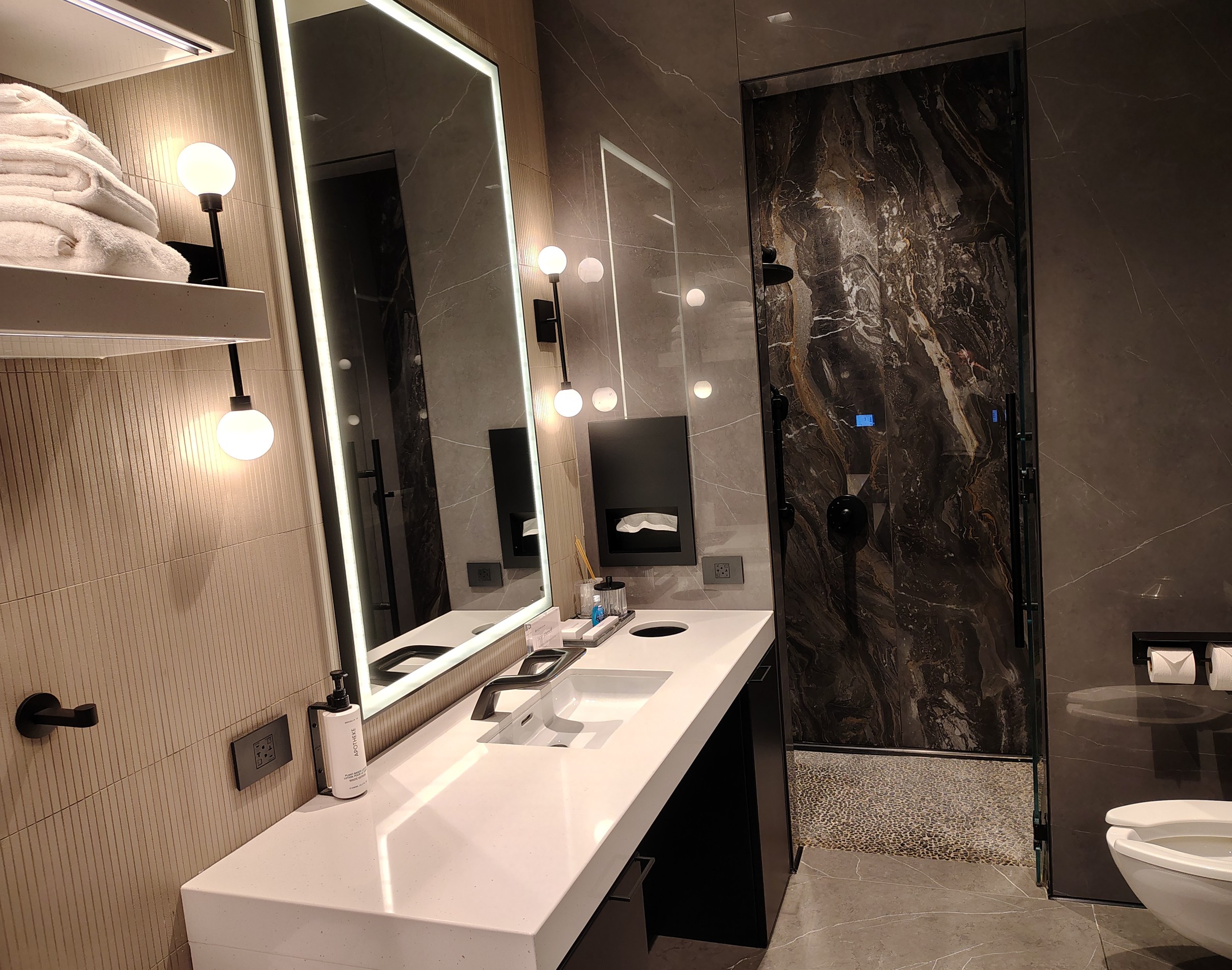 But the highlight of my visit was the shower suite. Again, I’m glad I stopped by to book it earlier, as I was able to squeeze it in the last 30 minutes of my two-hour stay. I enjoyed the design and decor of the inviting area, and the spa music complemented the experience without feeling too cheesy. Surprisingly, I find this shower suite experience competitive with the Delta One Lounge JFK. I still give the latter a slight edge, but the fact that a bank club’s version is even in the same conversation is noteworthy.