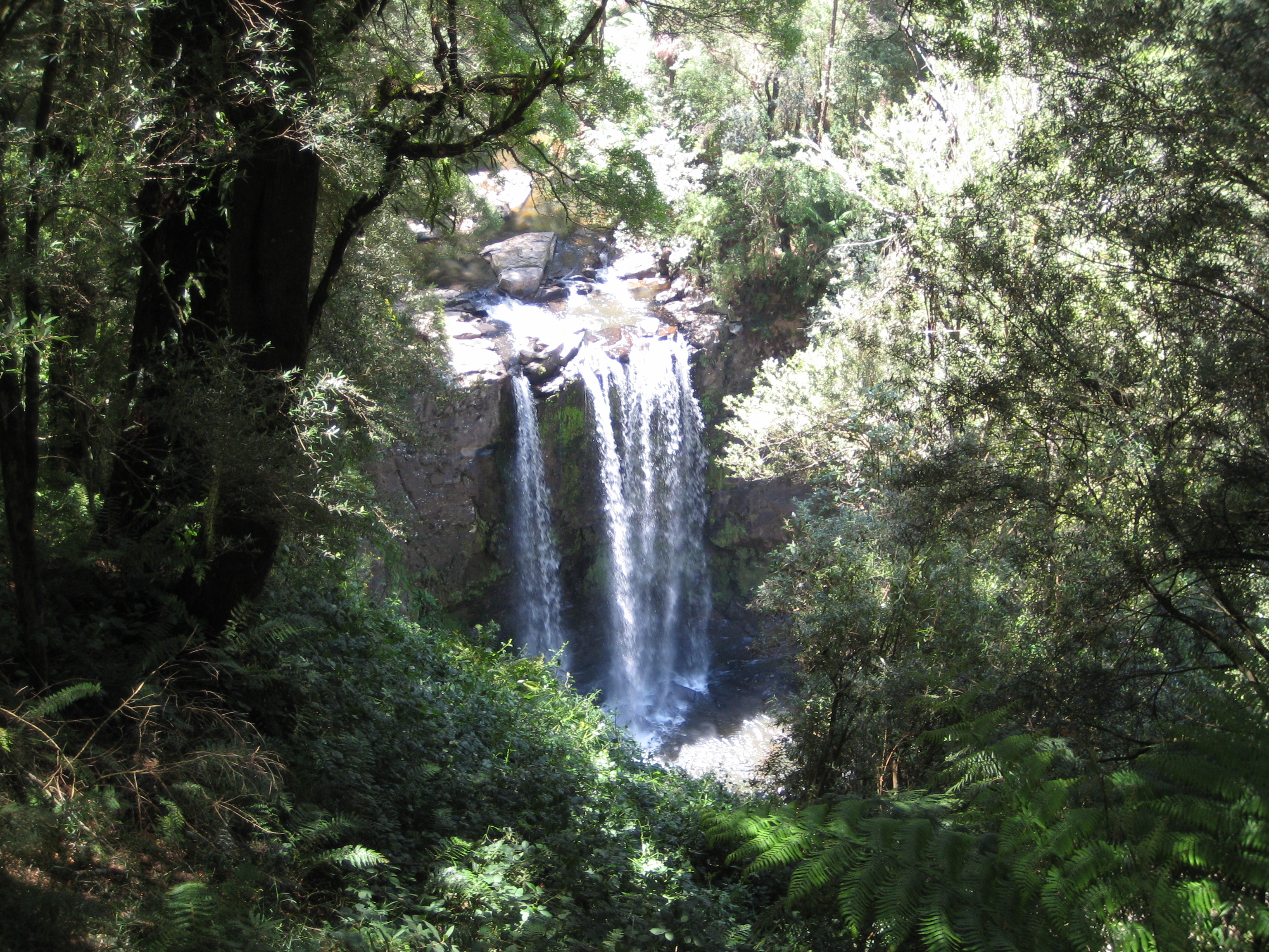 After leaving the Sheoak Falls we drove around another hour to the Great Otway National Park. We left the main road for a bit in order to take in a couple of the park’s neater locales. The first was a 12km drive through the rainforest on an unsealed road known as Turtons Track. Following the road we approached the carpark for Beauchamp Falls. This time the hike was around 30 minutes each way. Along the way, Shawn Reece cut his finger and started to bleed, but I was able to patch it up quickly by making a bandage out of a leaf! Luckily, in the end it was worth it and these falls were much healthier.
